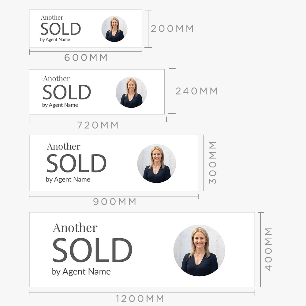 Our Real Estate SOLD Stickers are printed on Latest HP Latex Printers in high resolution full colour. We use gloss high quality promotional film for fast and easy installation.